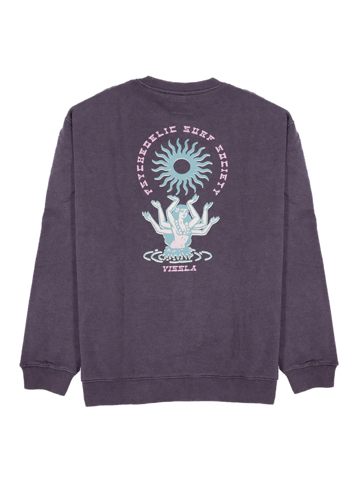 sudadera cuello redondo vissla Polar de cuello redondo de 380 g/m², teñido en prenda y lavado ácido. Interior cepillado. Diseño serigrafiado.